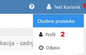 Prvo kliknite na svoje ime u gornjem desnom dijelu ekrana (1) i zatim na Profil (2):