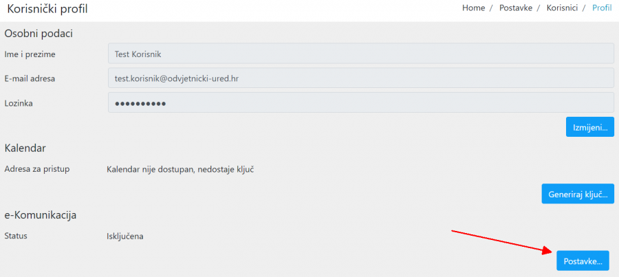 U profilu kliknite na postavke za e-Komunikaciju: