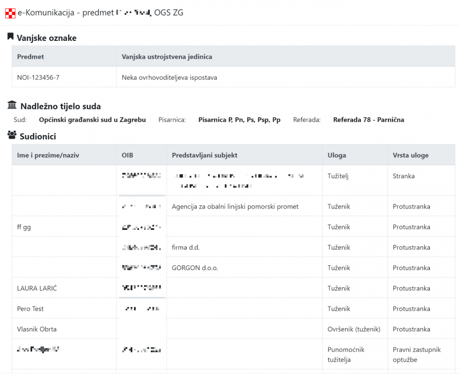 Povezivanjem sa sustavom e-Komunukacija će u Legal-IS automatski dolaziti svi podaci i izmjene na predmetima: